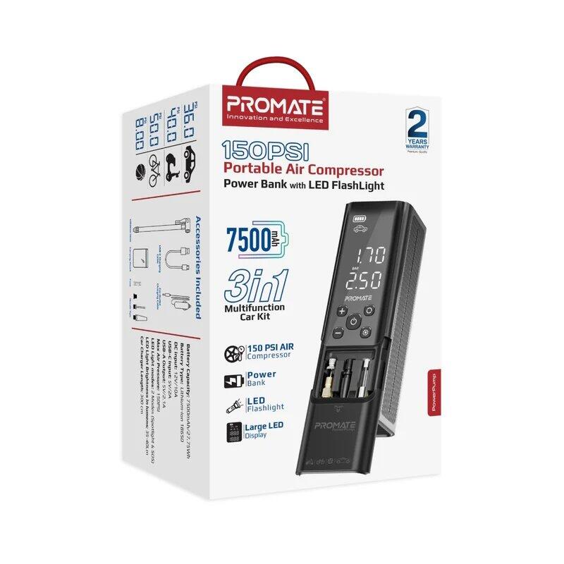 Насос, повербанк на 7500 mAh и LED фонарик. Promate Powerpump - многофункциональный компрессор, станет незаменимым помощником для каждого автомобилиста.