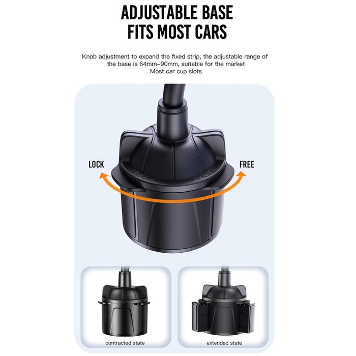XO C105 Автомобильный держатель для кофейной чашки Универсальное крепление для телефона с вращающимся регулируемым замком Черный