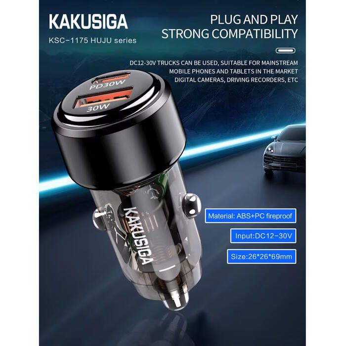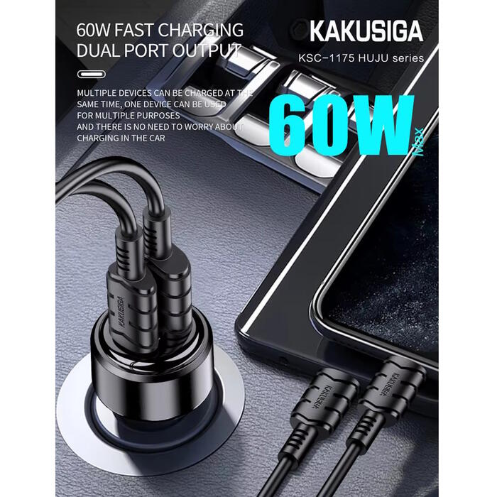 iKaku KSC-1175 HUJU Автомобильное зарядное устройство с двумя портами (1C1A) мощностью 60W для быстрой зарядки