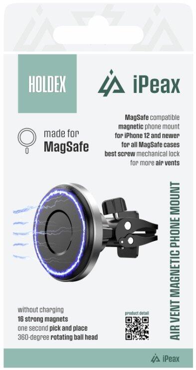 iPEAX HOLDEX это магнитное автомобильное крепление, разработанное для простого и надежного крепления телефона с помощью мощных магнитов и технологии MagSafe. Устанавливайте и снимайте телефон одной рукой — без зажимов и кнопок.