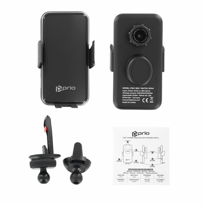 беспроводное автомобильное зарядное устройство с быстрой зарядкой 15 Вт и одним портом USB C.