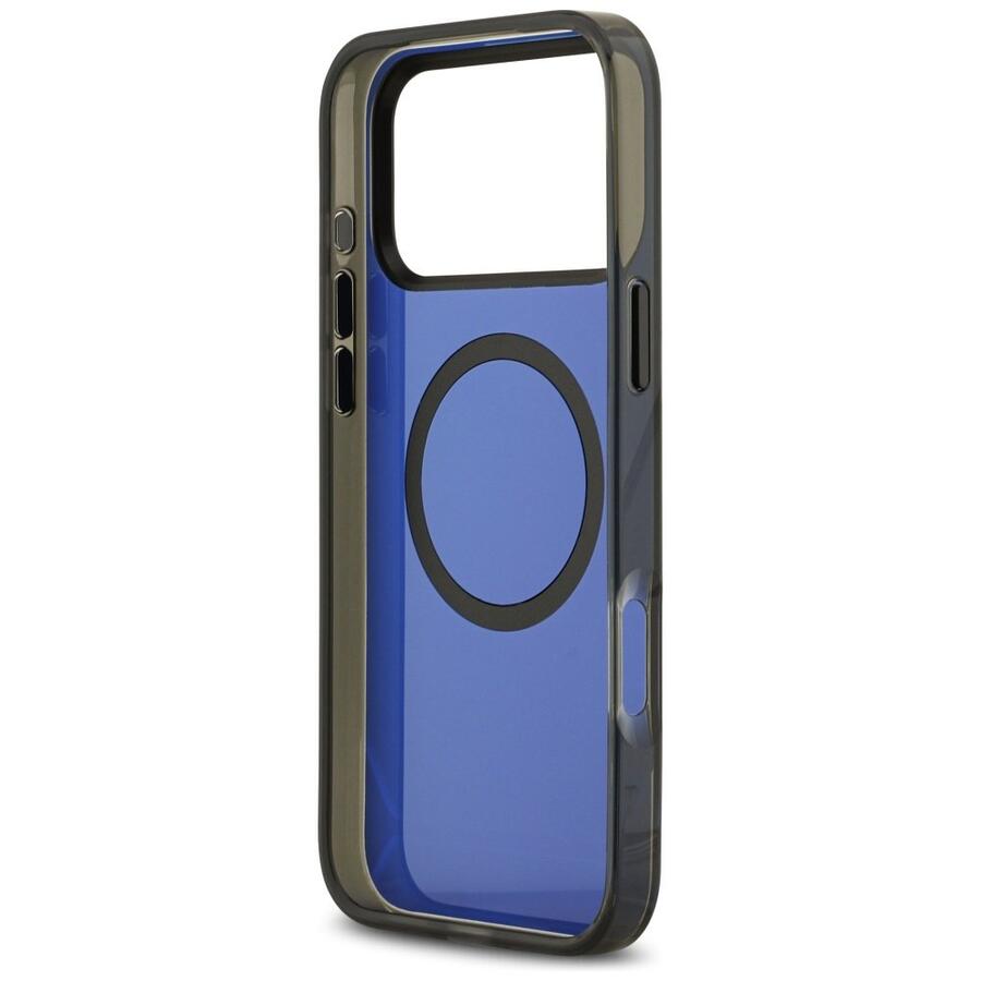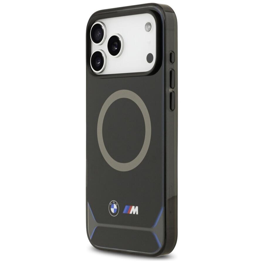 Задняя часть оснащена интегрированным кольцом MagSafe, а нижняя часть украшена тонкими синими декоративными линиями и логотипом BMW M, подчеркивающими его спортивный характер и безупречную точность изготовления.
