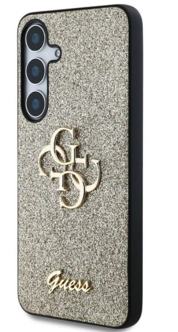 Guess Samsung S25+ Plus Case Fixed Glitter 4G Metal Logo Gold. Задняя часть Guess PU Fixed Glitter 4G Metal Logo — идеальный аксессуар для вашего телефона и вашего наряда, сочетающий в себе функциональность и стиль.