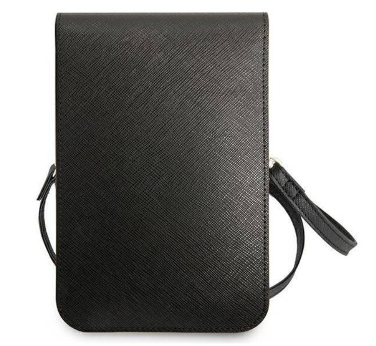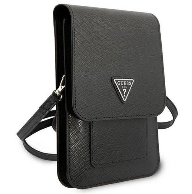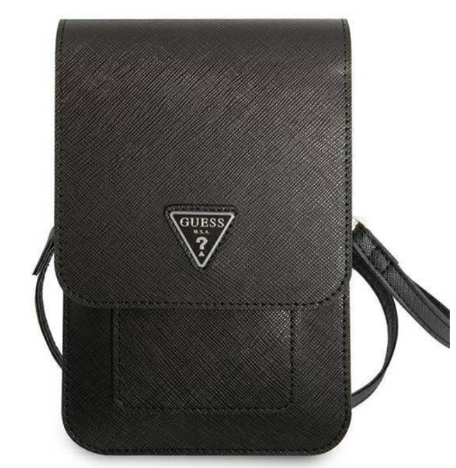 Фирменная сумка для смартфона из экологической кожи с роскошной текстурой Saffiano, закрывается на магнитный зажим, отделана треугольным логотипом Guess. Имеет съемный плечевой ремень, четыре кармана для карт/документов и два отделения для смартфона.