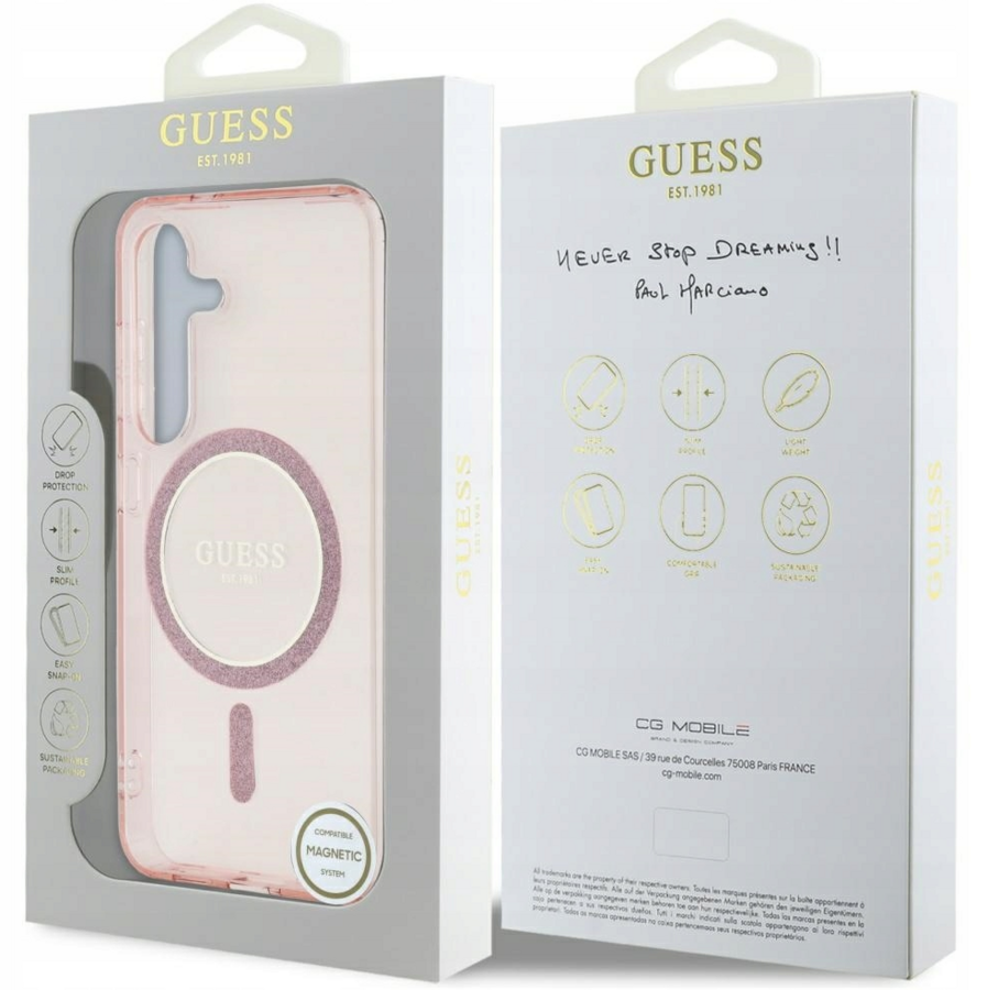 Guess Glitter Circle Classic Logo MagSafe Чехол для Samsung Galaxy S25