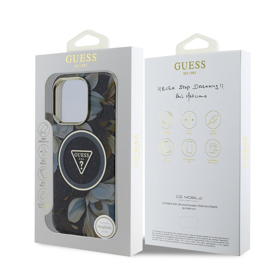 Guess IML Glitter Magnolia and Triangle Logo MagSafe Защитный чехол для Apple iPhone 16 Pro