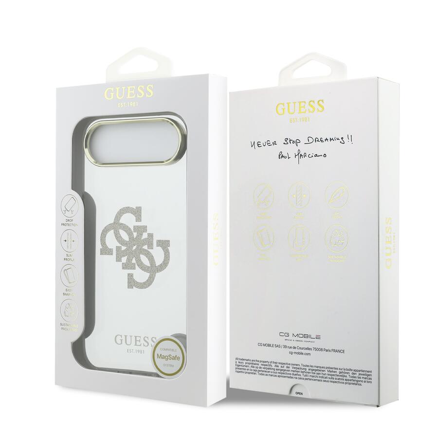 Чехол Guess PC/TPU Mirror 4G Glitter Logo MagSafe — идеальный аксессуар для вашего телефона и вашего образа, сочетающий в себе функциональность и стиль.