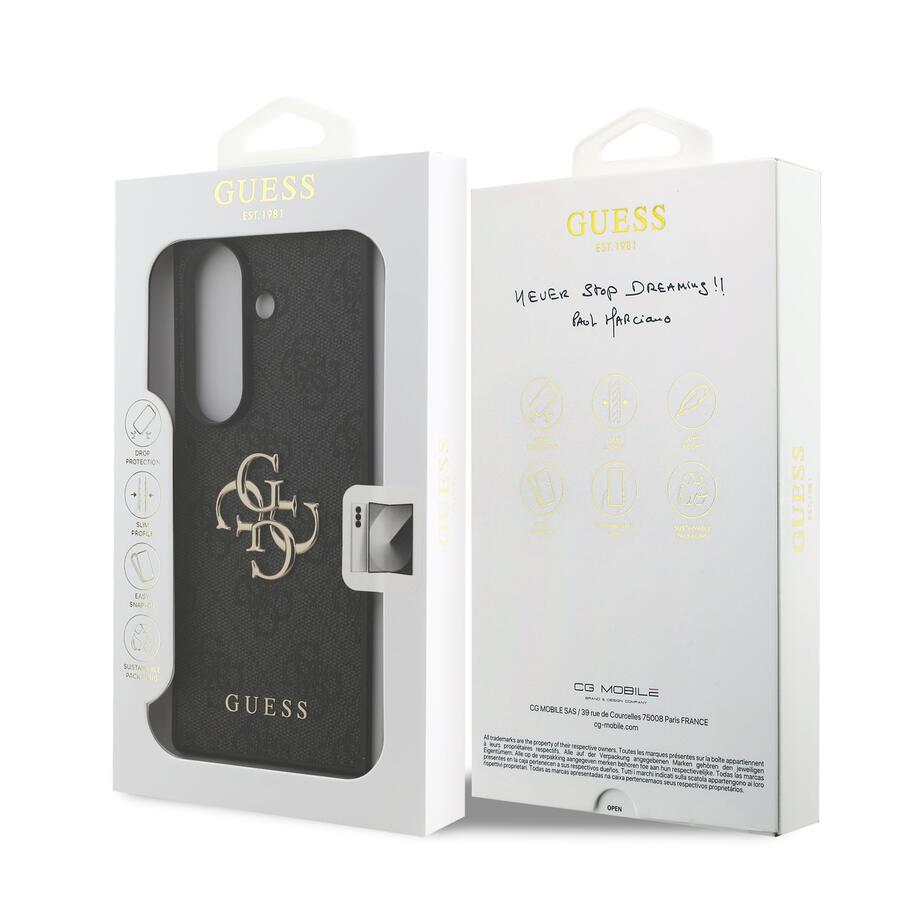 Премиальный чехол Guess PU 4G Metal Logo имеет элегантный фирменный узор 4G, дополненный логотипом GUESS.