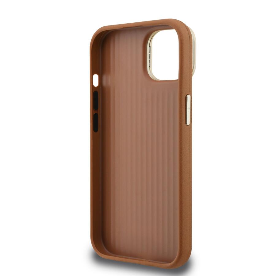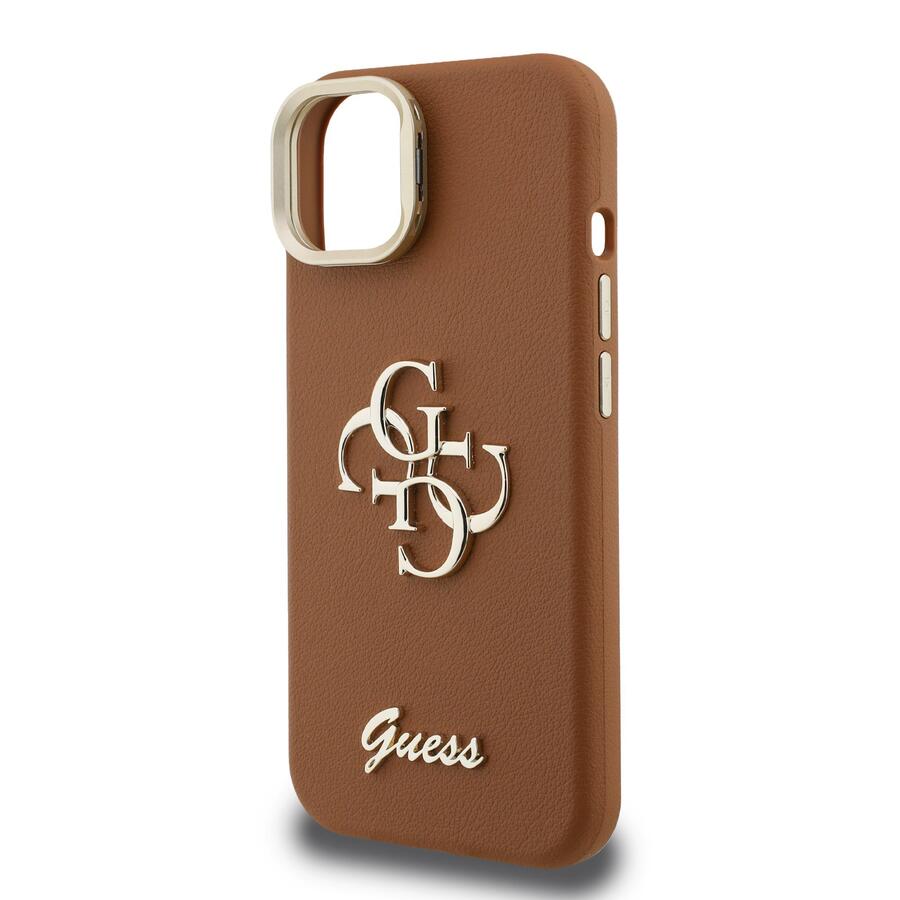 Guess PU Grained 4G Logo Stand Camera Frame Case Защитный чехол для iPhone 14 / коричневый