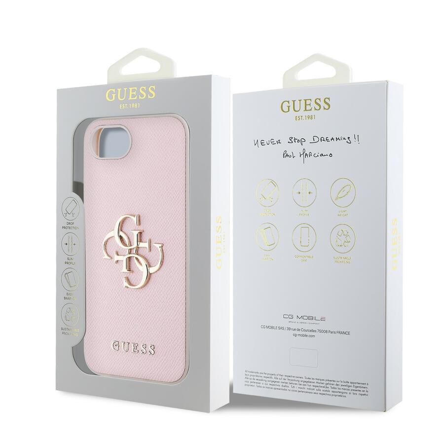 Чехол Guess PU Grained 4G Metal Logo — идеальный аксессуар для вашего телефона и вашего наряда, сочетающий в себе функциональность и стиль.
