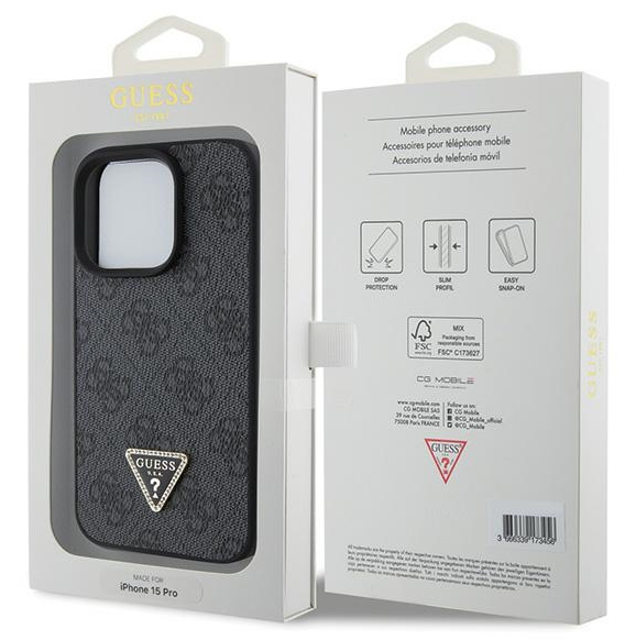 Guess PU Leather 4G Triangle Strass Case Защитный Чехол для iPhone 15 Pro Max