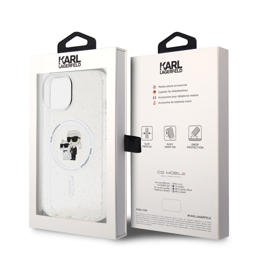 Задняя обложка MagSafe Karl Lagerfeld IML Glitter Karl and Choupette — идеальный аксессуар для вашего телефона и вашего наряда, сочетающий в себе функциональность и стиль.