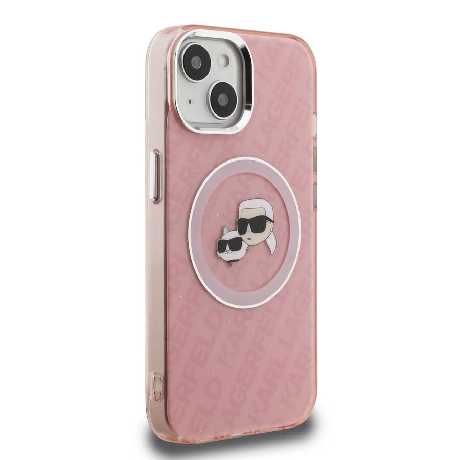 Karl Lagerfeld IML K&CH Heads Repeated Logo MagSafe Case for iPhone 15 Pink