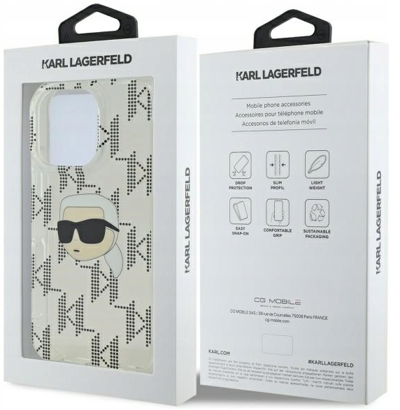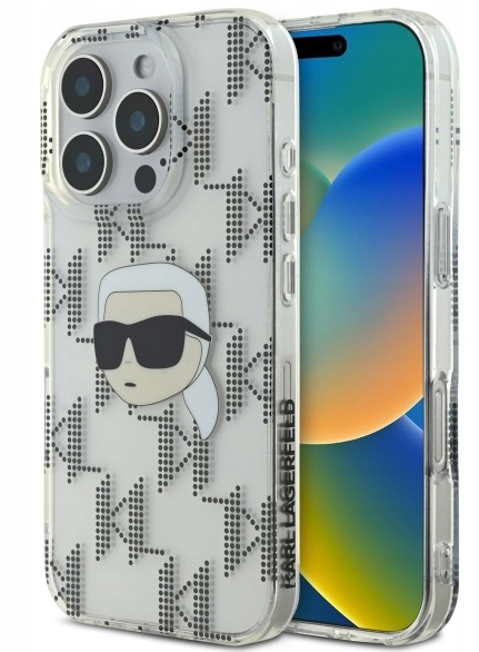 Karl Lagerfeld Saffiano Karl and Choupette Чехол с металлическим наплечным ремнём для iPhone 15 Pro / чёрный