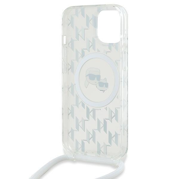 Этот элегантный твердый футляр привлекает внимание монограммой «KL», расположенной по всей его поверхности, что придает ему чрезвычайно дизайнерский вид. Встроенная система MagSafe позволяет легко и безопасно прикрепить чехол к совместимым аксессуарам, таким как зарядные устройства, автомобильные крепления или кошельки. Кроме того, чехол оснащен практичным шнурком, который позволяет носить телефон близко к себе, оставляя руки свободными.