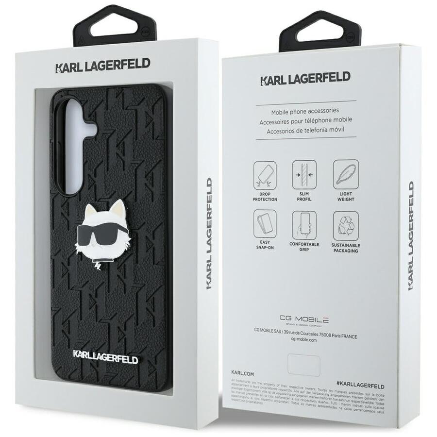 Karl Lagerfeld Leather Monogram Pin Logo Choupette Head Чехол для Samsung Galaxy S25