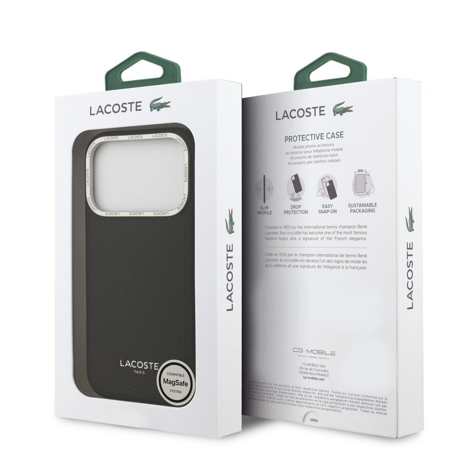 Чехол Lacoste PU Leather Champs Elysees MagSafe для iPhone 17 Pro сочетает элегантный дизайн и надёжную защиту. Выполнен из прочного полиуретана с мягкой текстурой под кожу и украшен фирменным логотипом Lacoste. Поддержка MagSafe обеспечивает совместимость с беспроводными зарядными устройствами и аксессуарами. Чехол точно повторяет контуры телефона, обеспечивая защиту от царапин, пыли и лёгких ударов. Идеально подходит для повседневного использования и подчеркивает фирменный стиль бренда.