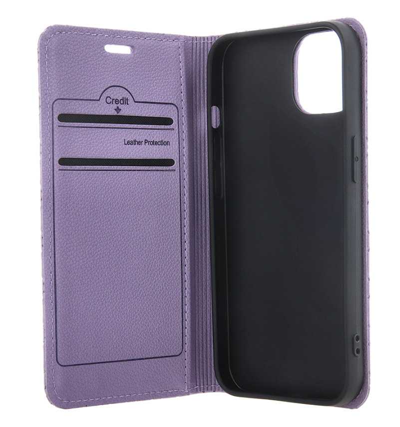 Чехол изготовлен из прочной и приятной на ощупь синтетической кожи, которая отлично имитирует натуральную. Внутренняя часть чехла аккуратно отделана материалом, схожим по текстуре с внешним, что обеспечивает полную защиту и элегантный внешний вид.