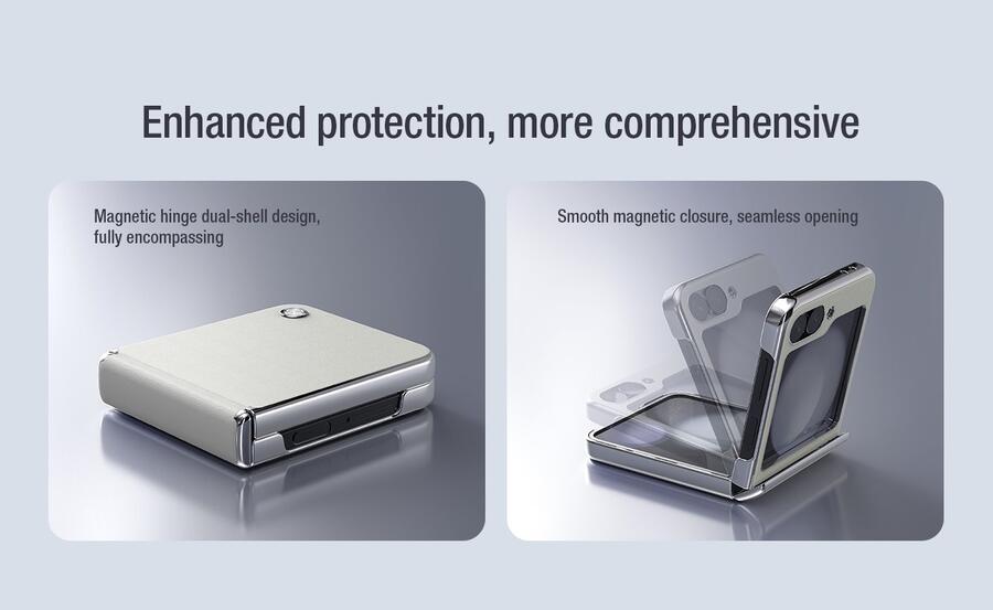 Двойная конструкция с магнитным креплением обеспечивает комплексную защиту, а слегка приподнятые края предохраняют экран или объектив камеры от царапин.