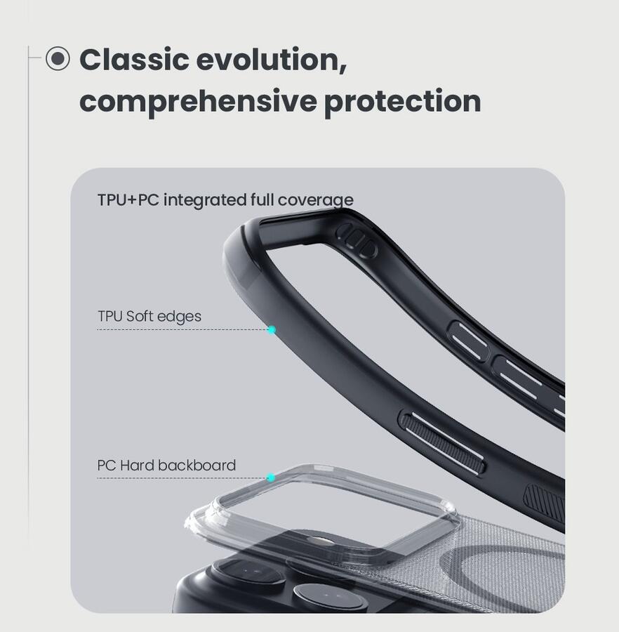 По сравнению с классическим Super Frosted, чехол выполнен из двух материалов и оснащен магнитом. Он отлично обработан и хорошо поглощает удары.