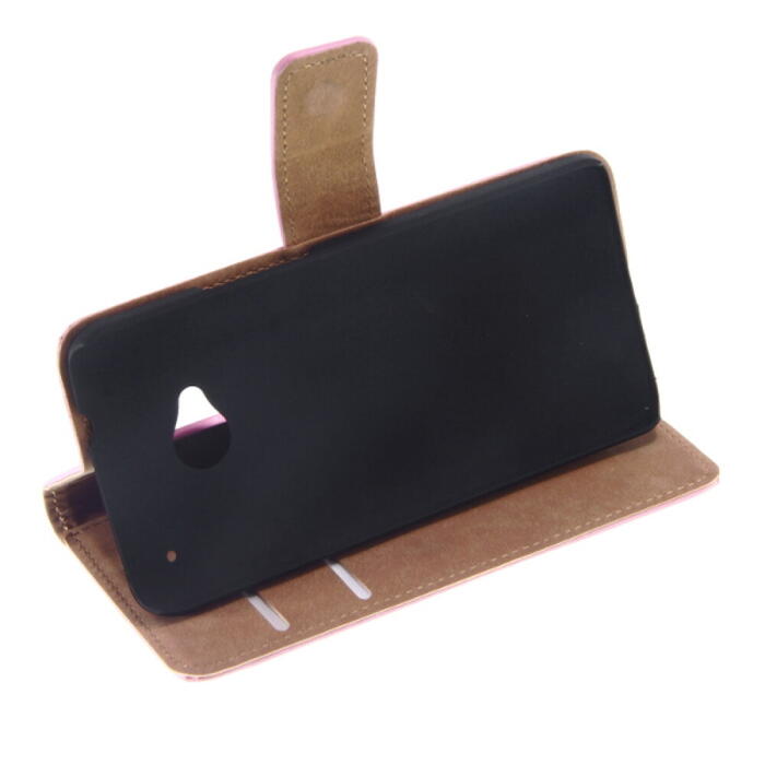 Тонкий кожаный чехол-книжка для HTC M7 розового цвета
