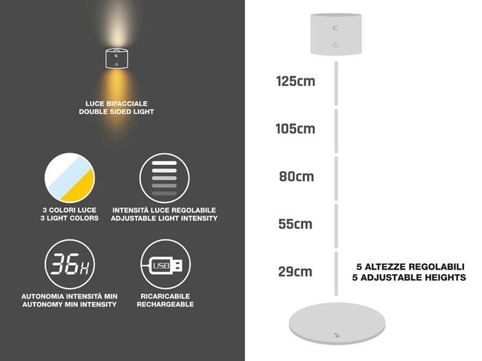 Перезаряжаемый и регулируемый по высоте: гибкое позиционирование с 5 настройками высоты