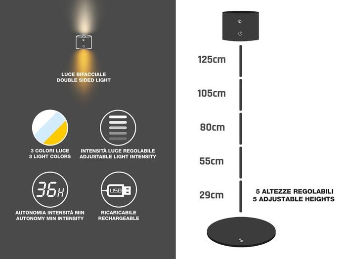 Перезаряжаемый и регулируемый по высоте: гибкое позиционирование с 5 настройками высоты