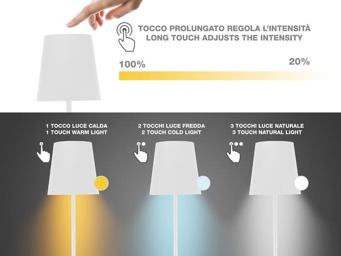 Простым прикосновением вы можете выбрать теплый, холодный или естественный свет.