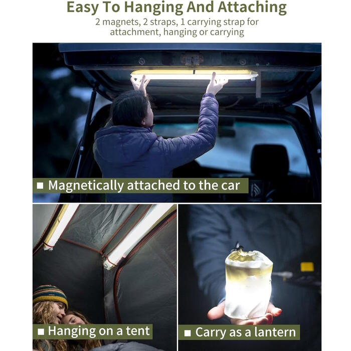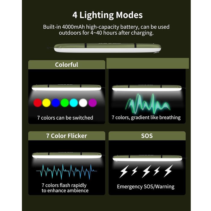 - Размеры: 60*12 см, Вес: 220 г, Материал: TPU- Мощный светодиод обеспечивает до 250 люмен света- Плавная регулировка яркости позволяет настраивать освещение- Универсальные режимы освещения для различных сценариев- Долговечный аккумулятор с возможностью выбора емкости 2000 мАч или 4000 мАч- Быстрая зарядка через USB за 2-3 часа- Водонепроницаемая конструкция с классом защиты IP66 обеспечивает долговечность в условиях открытого воздуха- Портативный и универсальный для кемпинга, походов и многого другого