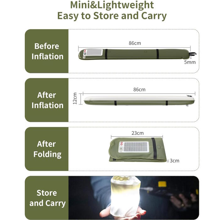 Изготовлен из высококачественного материала TPU Этот светильник безопасен для всех пользователей, включая беременных женщин и детей. Его инновационная конструкция позволяет легко надувать и сдувать его, что делает его идеальным для широкого спектра видов активного отдыха на природе.