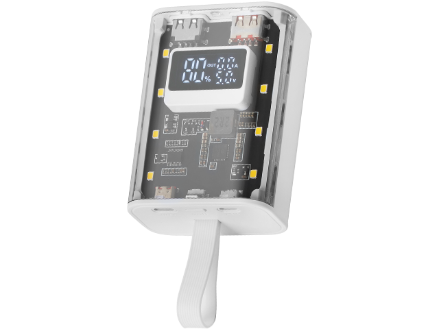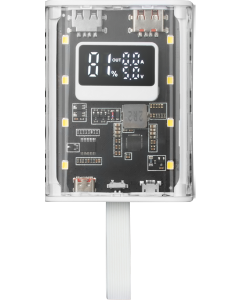 MPK-10K — это революция в дизайне и функциональности портативных аккумуляторов. Благодаря своему отличительному прозрачному дизайну и компактному размеру этот внешний аккумулятор емкостью 10000 мАч и мощностью 22,5 Вт обеспечивает сверхбыструю зарядку с технологией QC3.0 и PD3.0. Благодаря мощному светодиодному фонарю и ремню для удобной переноски, дисплею для контроля состояния аккумулятора, универсальной совместимости и возможности заряжать до трех устройств одновременно MPK-10K идеально подходит для тех, кто в пути.