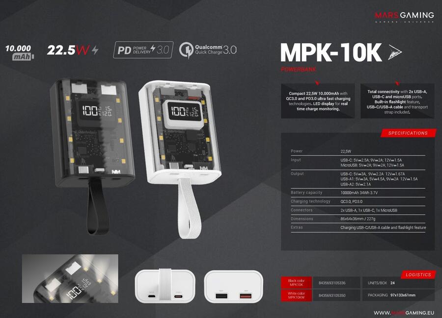 Mars Gaming MPK10KW Power Bank 10000mAh / QC3.0 & PD3.0
