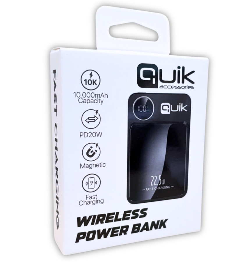 Quik QP-810 Wireless Magnetic Power Bank 10000mAh — компактный внешний аккумулятор с поддержкой магнитной беспроводной зарядки до 15W.