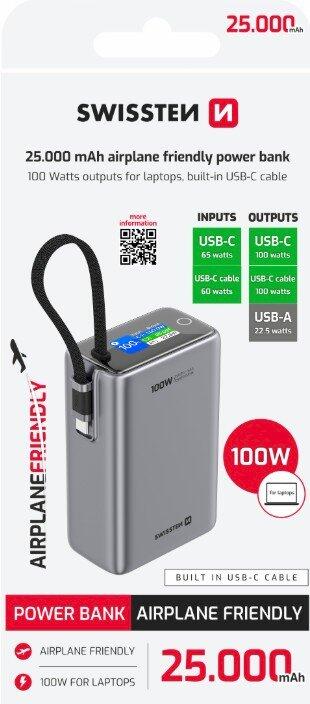 Swissten Power Bank 25000 mAh (96.25Wh) 100W co Встроенный кабель USB-C
