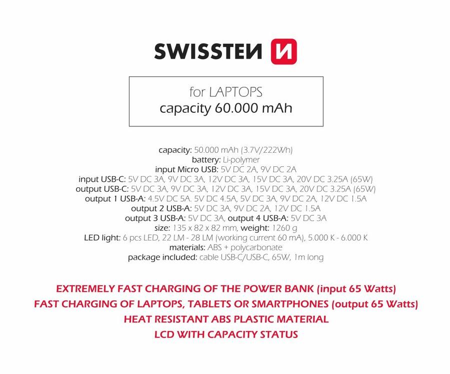 Емкость: 60 000 мАч (3,7 В /222 Втч)