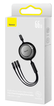 Кабель имеет 3 выходных порта — USB-C, Lightning и micro USB. Таким образом, вы сможете использовать его во многих ситуациях, более того, вы можете без проблем подключить 3 устройства одновременно. Компактная конструкция с выдвижным механизмом обеспечивает удобство хранения и транспортировки. Сделайте ставку на сочетание функциональности и удобства с Baseus Bright Mirror 3!