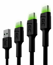 Green Cell USB Male - USB Type-C Male Set 3x with LED Diode 1.2m