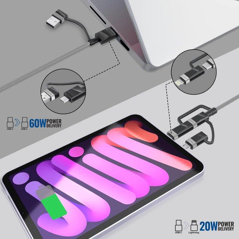 Promate PentaPower Универсальный кабель 6-в-1 USB-C(A) / micro / Lightning / 1,2m