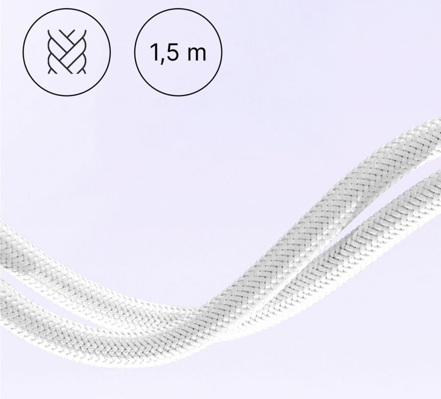 Кабель длиной 1.5m, обеспечивающий быструю зарядку до 60 Вт с использованием технологии Quick Charge 3.0. Изготовлен из прочного плетеного материала, предотвращающего спутывание и обеспечивающего долгий срок службы. Подходит для зарядки смартфонов, планшетов и других устройств с USB-C.