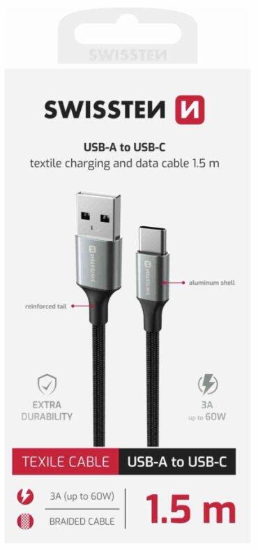Swissten Textile II USB - USB-C Kабель для передачи данных и зарядки 1.5m