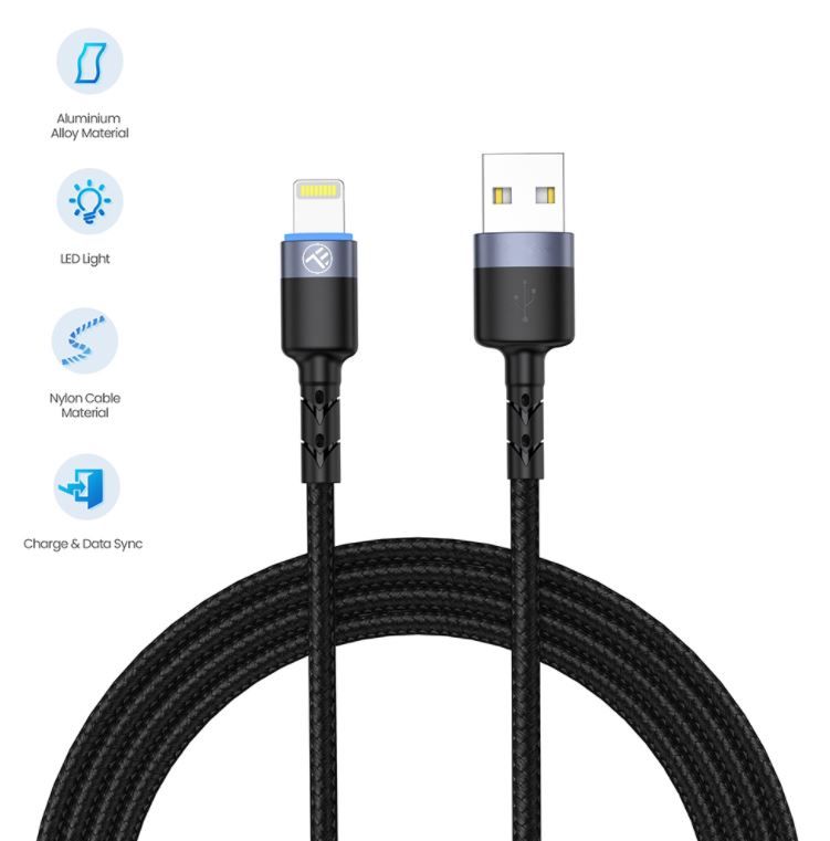 Tellur Data cable USB to Lightning LED, Nylon Braided, 1.2m black
