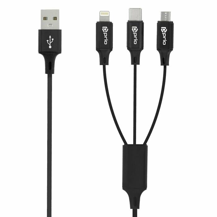prio 3in1 Micro USB & USB C & Lightning to USB A Cable 3A 1.2m черный