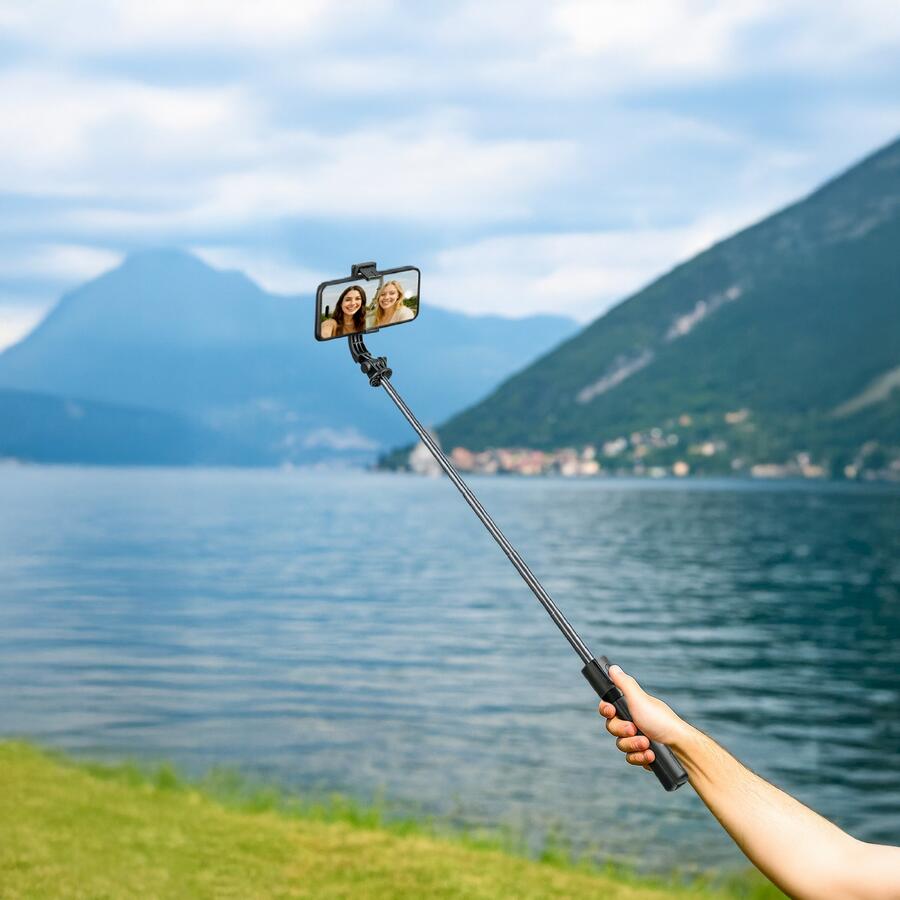 Благодаря выдвижной конструкции и съемному контроллеру Bluetooth вы можете легко делать селфи, групповые фотографии, стабильные снимки продуктов, видео из путешествий и домашние видеоблоги.