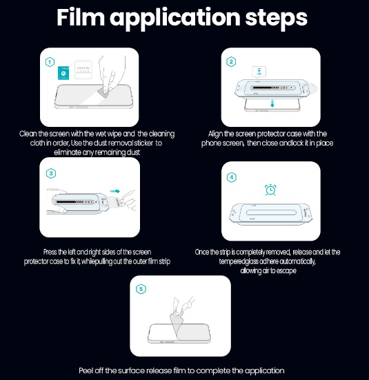 Благодаря ему вы можете легко установить закаленное стекло на дисплей, не рискуя сместить его или образовать пузырьки воздуха.