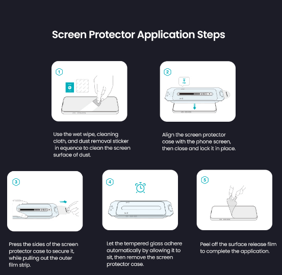 Благодаря ему вы можете легко установить закаленное стекло на дисплей, не рискуя сместить его или образовать пузырьки воздуха.