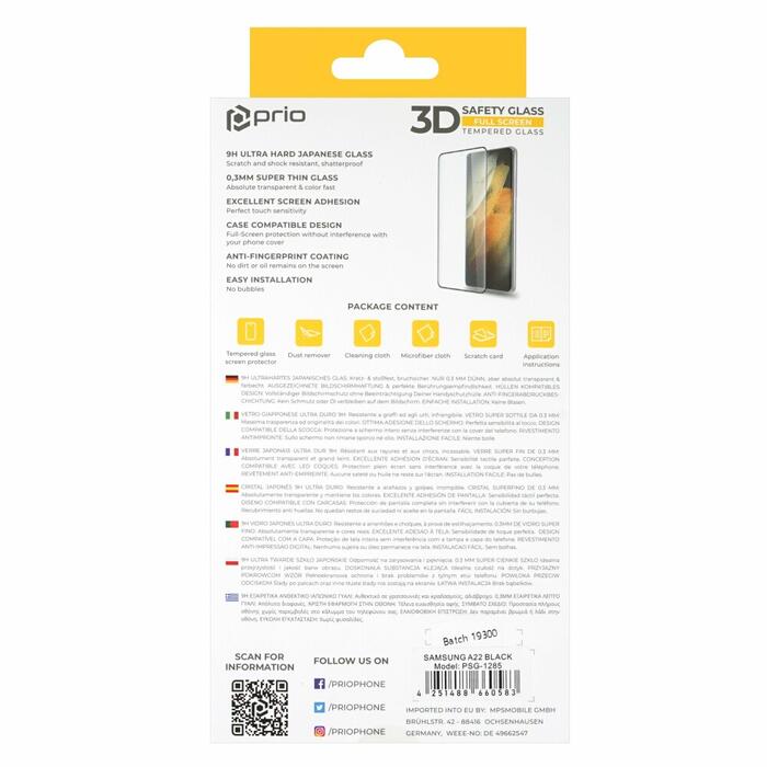prio 3D Закаленное стекло Защитный экран для Samsung A22 4G черный