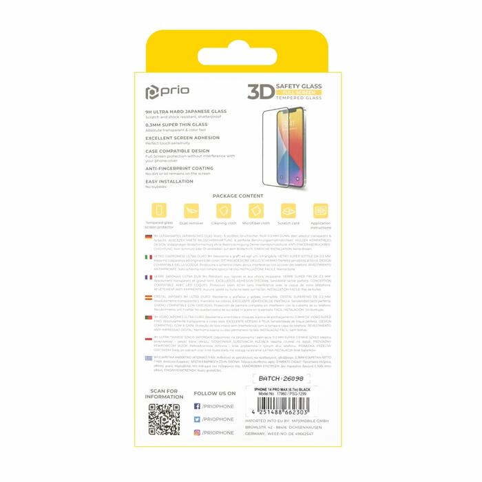 prio 3D закаленное стекло для iPhone 14 Pro Max (6,7 дюйма) черный