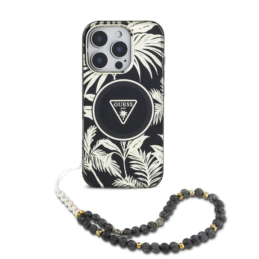 Guess IML Palm Trees Triangle Logo Pearl Strap MagSafe Case Чехол для Apple iPhone 16 Pro