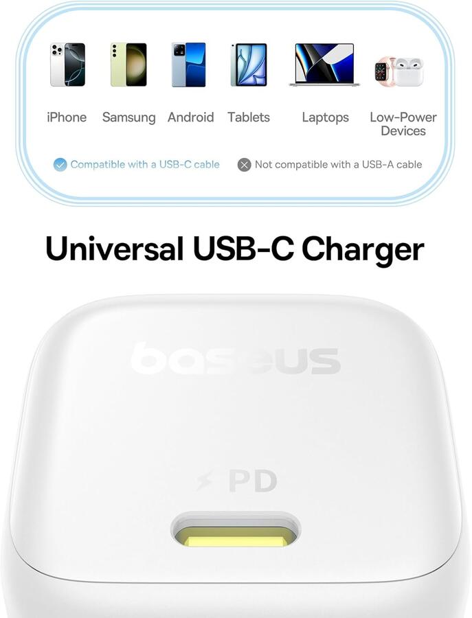 Baseus PicoGo GaN USB-C мощностью 45 Вт — это ультракомпактное быстрое зарядное устройство с инновационной технологией GaN. Идеально подходит для смартфонов и планшетов. Оснащено USB-C выходом с мощностью до 45 Вт. Встроенные системы защиты обеспечивают безопасную зарядку.