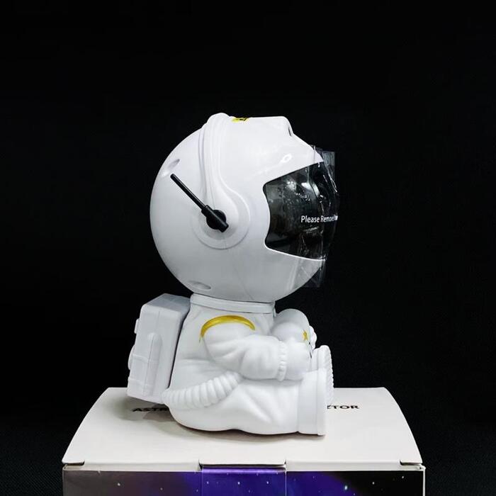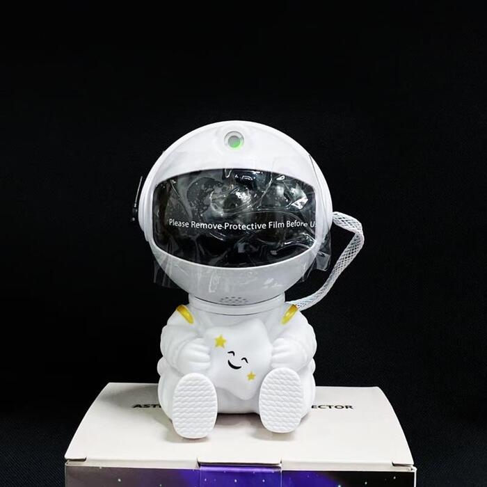 Этот стильный гаджет отображает красочные и подвижные узоры галактик и лазерных звезд. В комплект входит пульт, с помощью которого можно регулировать яркость и менять отображаемые картинки. Проектор расположен в магнитной голове астронавта, что позволяет регулировать угол подсветки. Наилучший эффект достигается в затемненных помещениях, когда проектор направлен на плоские поверхности. Питание устройства осуществляется с помощью кабеля (входит в комплект).